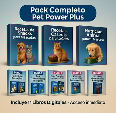 Al obtener acceso al programa Pet Power Plus, recibirás un paquete digital completo con nutrición natural, recetas caseras, guías de cuidado y herramientas prácticas para transformar la salud y el bienestar de tu mascota.